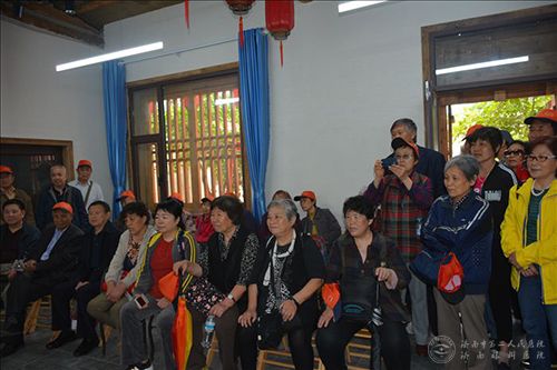 春末夏初,细雨方歇,微风和煦,空气氤氲。远离城市的喧嚣,漫步于朴实无华的古村落,尽享慢悠惬意的田园风光。在导游的带领下,大家参观了极具特色的高台民宿和柴烧古窑,老同志们被浓郁的鲁北乡村魅力和黄河古渡风情所吸引,纷纷拿出手机驻足拍照,记录下美好瞬间,并随即转发到朋友圈,与更多的亲朋好友共同分享此时的喜悦之情。此外,导游还带领大家欣赏了吕剧、皮影戏、戏法等别具韵味的民俗表演,精彩纷呈的演出博得现场阵阵喝彩。