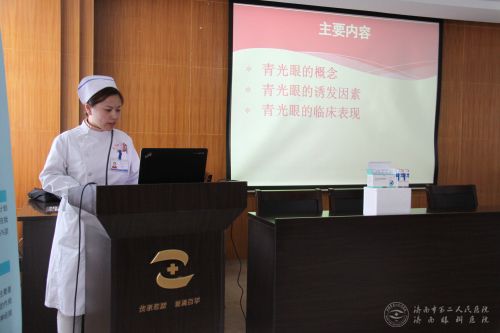 3月13日下午,市二院门诊病房楼七楼会议室里坐满了前来听讲座的患者,眼科副主任医师孙嬿为大家做了题为《世界青光眼周,提防隐形视力杀手》的讲座,为大家全面介绍了什么是青光眼以及青光眼的分类及治疗,帮助大家进一步增强对青光眼的认识;眼科主治医师聂巧莉通过《急性闭角性青光眼的早期表现与预防》的主题讲座,阐述了发现潜在青光眼患者,进行早期诊断与治疗的重要性;俗话说“三分靠治疗七分靠护理”,主管护师李宁为大家讲解了护理方面的知识,尤其是针对部分青光眼患者脾气暴、性子急的特点,通过《青光眼病人的护理及健康指导》的讲座,详细地讲述了青光眼患者日常生活注意事项及青光眼术后护理重点。