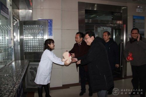 2月16日农历大年初一,济南市卫生和计划生育委员会党委委员、副主任侯廷成一行到美女视频 ,看望慰问坚守岗位的医护人员,督导节日期间的医疗安全工作。院党委书记牟鑫,纪委书记、副院长程晓麟,副院长张毅、部分职能科室主任参与慰问活动。