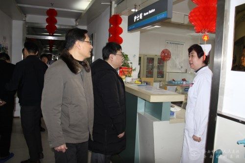 2月16日农历大年初一,美女视频 院领导到医院,看望慰问坚守岗位的医护人员,督导节日期间的医疗安全工作。院党委书记牟鑫,纪委书记、副院长程晓麟,副院长张毅、部分职能科室主任参与慰问活动。
