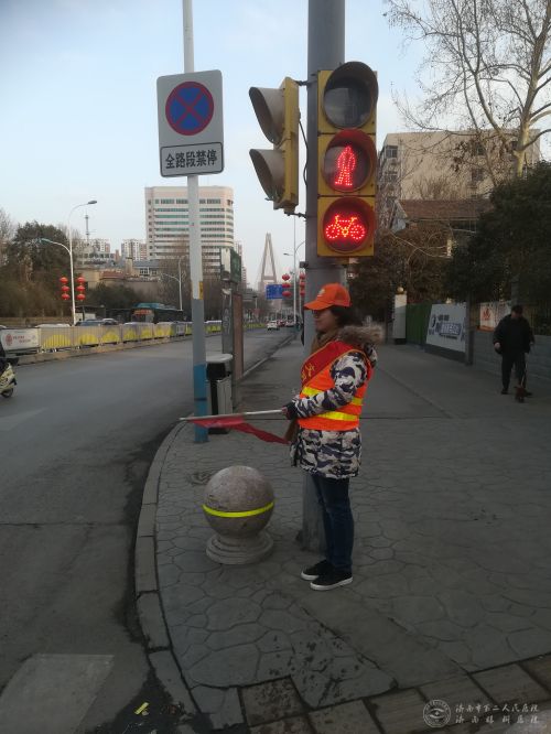 3月2日,正月十五元宵节,虽说冬去春来,但寒风依然料峭。天色渐晚,道路上的人们裹着厚厚的棉衣迫不及待地赶往家中与亲人团聚。但在经四纬六路路口,济南市二院文明交通志愿者们却在寒冷天气中给行人带来一丝温暖,他们 迎着凛冽的寒风,身着红色马甲,手持文明劝导旗,站在路口为来往行人提供各种志愿服务。