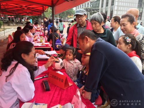 活动现场,来自市二院及其他四家医疗机构的医务人员们在活动特设的医疗服务区开展义诊宣教。眼科医师利用简单的检查仪器为前来参加活动的孩子及家长们进行眼科检查,并接受咨询。志愿者们还为孩子们送上了精美的视力表和爱眼手册,宣传爱眼知识,提高人们的爱眼意识。一上午的时间,义诊台前的人一直络绎不绝,眼科医师耐心细致地解答着每一个咨询的问题,市二院眼科医师专业的建议和优质的服务得到了大家的一致好评。