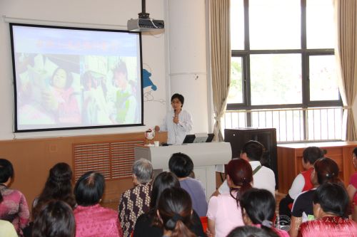 此次专题讲座针对小朋友和家长分别开设了宝宝课堂和妈妈课堂。市二院斜弱视及小儿眼病专业组副主任医师杨珺为90余名小朋友及家长分别作了题为《护眼小讲堂》和《爱眼护眼知多少》的专题讲座。杨珺医师在讲座中运用活泼生动的语言,向小朋友及家长们深入浅出地讲解了人的眼球构造,以及斜视、弱视、近视、散光等儿童常见眼病的防治知识,并在课件中穿插大量资料图片,进一步帮助孩子和家长们加深记忆,理解知识。孩子和家长们被专家专业生动的讲座深深吸引,在授课人的引导下他们认真听讲、踊跃发言,与授课医师积极互动,热烈而又轻松的气氛感染了在场的每一个人。讲座过程中,随行的护理人员还为小朋友们演示了“七步洗手法”,帮助小朋友们养成良好的卫生习惯。讲座结束后,杨珺医师还为家长们提供了儿童眼病防治咨询,并为部分小朋友进行了眼部检查。