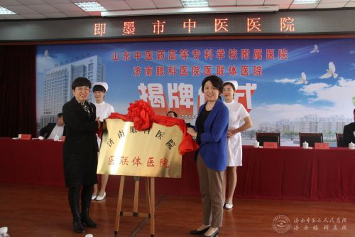 (济南眼科医院)医联体医院揭牌仪式在即墨市中医院举行。山东省卫计委中医药综合处杨玉坡副处长、青岛市中医药管理局赵国磊副局长、即墨市政府管元江副市长、即墨市卫计局杨岩局长、乔绪辉副局长、美女视频