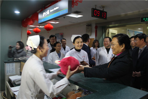 巩市长还先后到挂号室、导医台、眼科门诊、眼底病病房等科室,实地察看了节前医疗服务运行情况和就诊患者治疗情况,亲切慰问了正在值班的医务人员,详细询问了就诊患者的病情,祝愿他们早日康复并向他们赠送了礼物。巩市长对医院医疗安全工作的开展情况给予了充分肯定,她勉励大家进一步发扬医者仁心的精神,以保障患者健康为中心,以热情认真的态度对待患者和各项工作,为人民群众提供优质高效的医疗服务,确保人民群众度过一个欢乐祥和的春节。(李嘉宁)