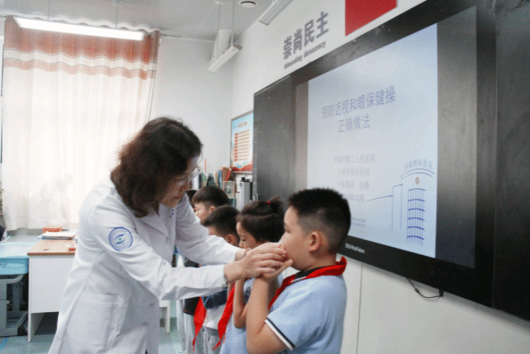 )中医眼科专家走进山东师范大学附属小学开展预防近视专题讲座,向孩子们普及近视防控健康知识,积极推广中医“治未病”的理念,让近视预防关口前移。