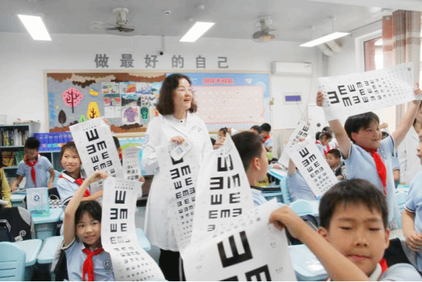 本次活动由市眼科医院(市二院)门诊部、宣传科、中医眼科共同开展,医院中医眼科副主任、副主任医师宿艳担任主讲人。在讲座环节,宿艳主任通过图文并茂的ppt课件和通俗易懂的语言,深入浅出地为同学们普及了眼睛的功能、眼球的发育及眼睛视物的原理,让孩子们了解眼睛在日常生活中的重要性。主讲人还从中医角度出发,讲解如何通过耳穴压豆这一中医传统疗法,快捷方便地预防近视、提升眼健康水平。在互动环节中,医务人员以开展游戏的方式,为孩子们现场指导眼保健操的正确姿势,学生们积极参与,踊跃展示。同学们表示,今后的学习生活中,要养成良好的学习和用眼卫生习惯,合理使用电子产品,积极参加多种形式的户外活动保护眼睛,做好眼健康第一责任人。