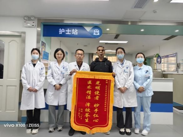 在此次年会展示中,李彬教授通过“超声乳化联合人工晶状体植入术”成功为王先生实施了双焦晶体植入手术,使王先生重新获得了光明。在复查时,王先生怀着激动的心情,双手捧着一面写着“光明使者、妙手仁心,医术精湛、泽被苍生”的锦旗送给了李彬教授,表达了对李彬教授的感激之情。