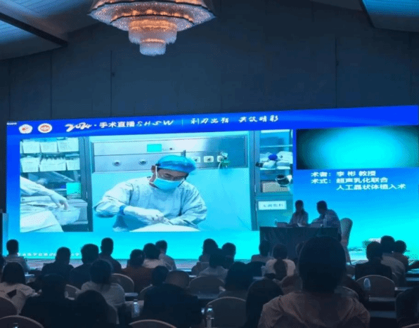 在手术过程中,李彬教授操作熟练、技艺高超,切开—乳化—抽吸—植入,整个过程有条不紊,从容淡定。1500余名眼科专家学者通过现场直播观看这台不到十分钟的手术展示,大家都被李彬教授娴熟的手法、高超的技艺深深地吸引。最终,在热烈的掌声中李彬教授成功为患者实施了“超声乳化联合人工晶状体植入术”手术,得到了专家学者们高度赞赏和认可。
