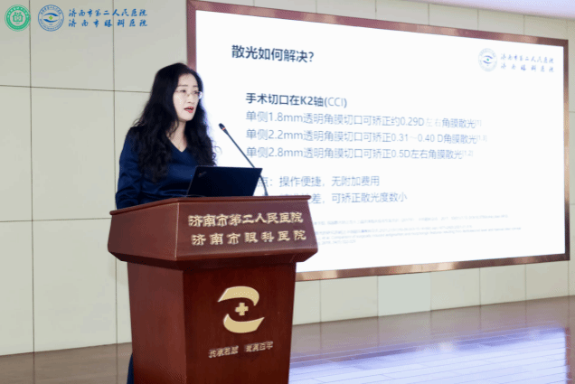 在学术交流环节,山东中医药大学附属眼科医院毕宏生教授、美国诺瓦东南大学访问学者高蕾、德国吕贝克大学访问学者李姗姗、上海复旦大学附属五官科医院谭越等多位来自来自国内外知名眼科医疗机构学者与市眼科医院(市二院)专家展开了一系列精彩纷呈的学术报告、专题讲座和手术直播演示。内容涵盖了青光眼、白内障、眼底病、角膜、屈光手术等多个方面内容。与会专家们通过深入浅出的讲解和生动的案例分析,分享了他们在眼科领域的宝贵经验和前沿知识。