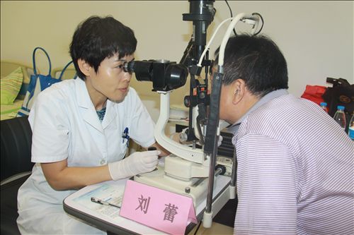 眼科专家为群众现场检查眼睛