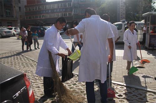 (济南眼科医院)领导班子成员与职能科室全体干部职工,在院内开展了卫生大扫除行动。