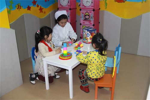 在采访中,记者发现有一位女士正带着一个3岁左右的孩子在游乐区快乐地玩耍。了解后才知道,这位女士姓李,是带大女儿来进行弱视训练的,有两个孩子的她因为没人照看孩子,只能带着小儿子一起陪同。以前姐姐训练时,弟弟总是不耐烦,弄得她不知该照顾大的还是关心小的。这次有了玩具区,弟弟可开心了,各种玩具一直玩个不停,姐姐做完了训练还不想走,一直嚷着下次训练他还陪着姐姐。李女士特别感谢医院的这个贴心设计,着实解决了她的大难题。另一位孩子的妈妈刘女士也是这次设计的受益者之一,她的儿子从小就怕进医院,查出弱视后医生说需要接受训练,但孩子一听说去医院就拒绝,让她十分为难。过了年,终于连哄带骗地把孩子带到了医院,本想能坚持多久就算多久。没想到一进训练室,看到满屋的卡通人物、彩色的桌椅,连窗帘都是绿色的小马,还有各种玩具和正在玩耍的小朋友们,儿子似乎一时间忘记了这是在医院,马上投入了玩具的怀抱。玩了一段时间后,竟然自觉地接受了训练。看到这种情况,刘女士大为欣喜,忙对医生说:“这么漂亮、好玩的地方简直不像医院,太人性化了,我孩子估计再也不会害怕来医院了,真是太好了!”