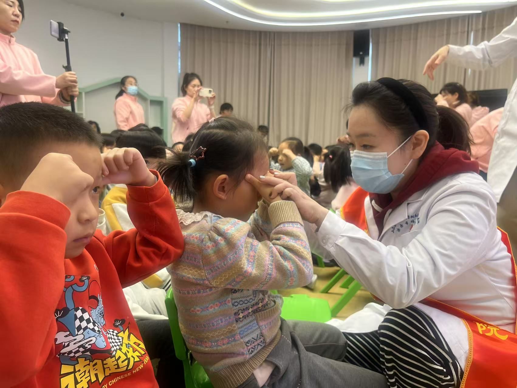 活动当天,虽然窗外寒风凛冽,幼儿园内却暖意融融。下午3时许,市眼科医院(市二院)的专家们准时到达幼儿园。中医眼科主任、副主任医师宿艳身着白大褂,面带亲切的微笑,瞬间吸引了孩子们的注意。宿主任首先为孩子们带来了一场生动有趣的护眼知识讲座。她利用图文并茂的PPT,详细介绍了眼球的结构、近视的成因以及保护眼睛的有效方法。随后,宿主任一边讲解,一边示范,手把手地教授孩子们眼保健操的正确做法,孩子们则在台下认真地跟着学了起来。在宿主任的耐心指导下,孩子们很快掌握了眼保健操的要点,并在轻松愉悦的氛围中完成了整套动作。宿主任还叮嘱孩子们,做眼保健操之前要注意手部清洁,确保每个动作都做到位,这样才能真正起到保护眼睛的作用。