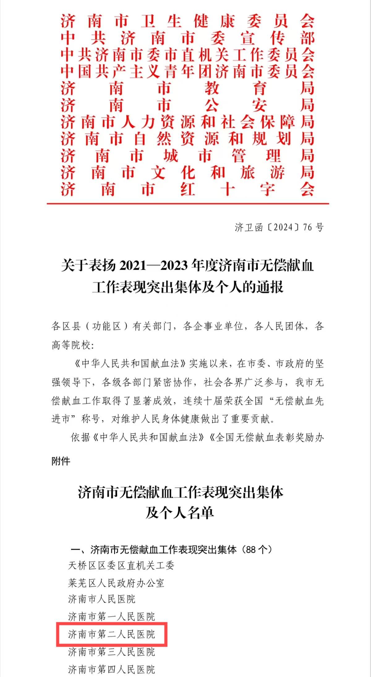 为表扬先进、树立榜样,推动无偿献血事业的持续健康发展,济南市卫生健康委员会、中共济南市委宣传部等十一部门联合发布《关于表扬 2021—2023 年度济南市无偿献血工作表现突出集体及个人的通报》,美女视频