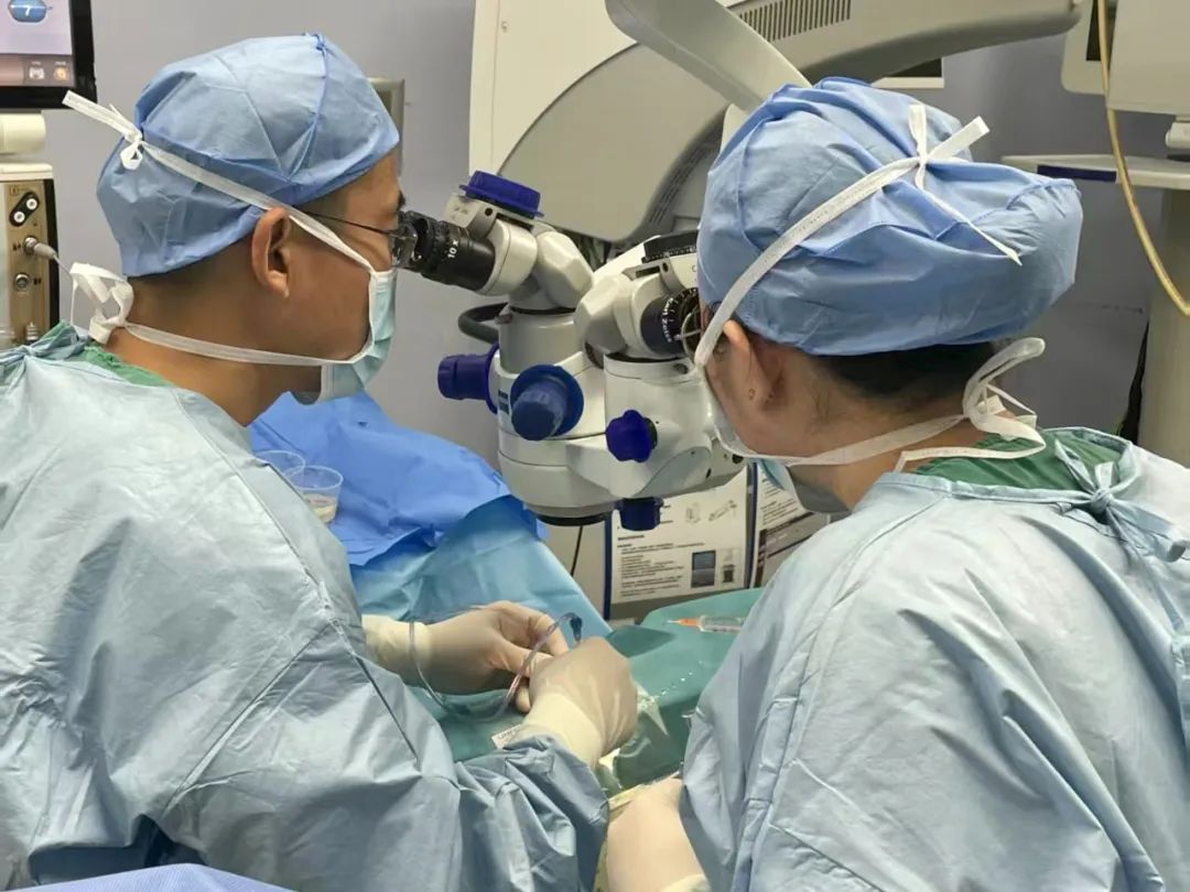 针对患者复杂的病情,眼七科主任、主任医师李彬立即组织科室骨干连同青光眼专家进行会诊。考虑到患者是独眼,唯一功能眼的手术失败将导致全盲。李彬主任强调:“患者长期青光眼,有爆发性脉络膜出血的风险,术前要稳定患者眼压;角膜内皮计数少,容易发生角膜内皮失代偿,术中尽可能减少对内皮细胞的损伤,要最小化手术创伤,最大化内皮保护,最优化术后管理”。并针对患者实际情况制定个性化手术和术后护理方案,确保“唯一视力”万无一失。