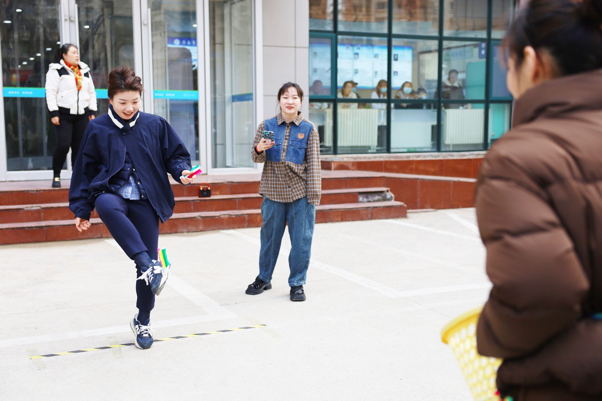 下午两点半,运动会正式开始。开场舞表演《上春山》为活动拉开了序幕,展现了医院职工们的健康风采。运动会设置了多个趣味项目,既有团队合作,也有个人竞技,充分体现了“趣味无穷”的主题。团圆幸福圈的比赛中,各分会组成的队伍手拉手站成一圈,呼啦圈在队员之间快速传递,大家齐心协力,力争用最短时间完成比赛。比赛过程中,队员们紧密配合,展现了团队合作的精神;趣味接绣球比赛则考验了团队协作能力。每两人一组,踢毽人与接毽人默契配合,毽球在空中划出优美的弧线,接球人灵活移动,努力将毽球接进篮筐;单人跳绳项目中,女职工们分为老、中、青三个年龄组,大家精神抖擞,跳绳飞舞,展现了健康与活力。比赛过程中,大家笑声不断,场面热闹非凡。