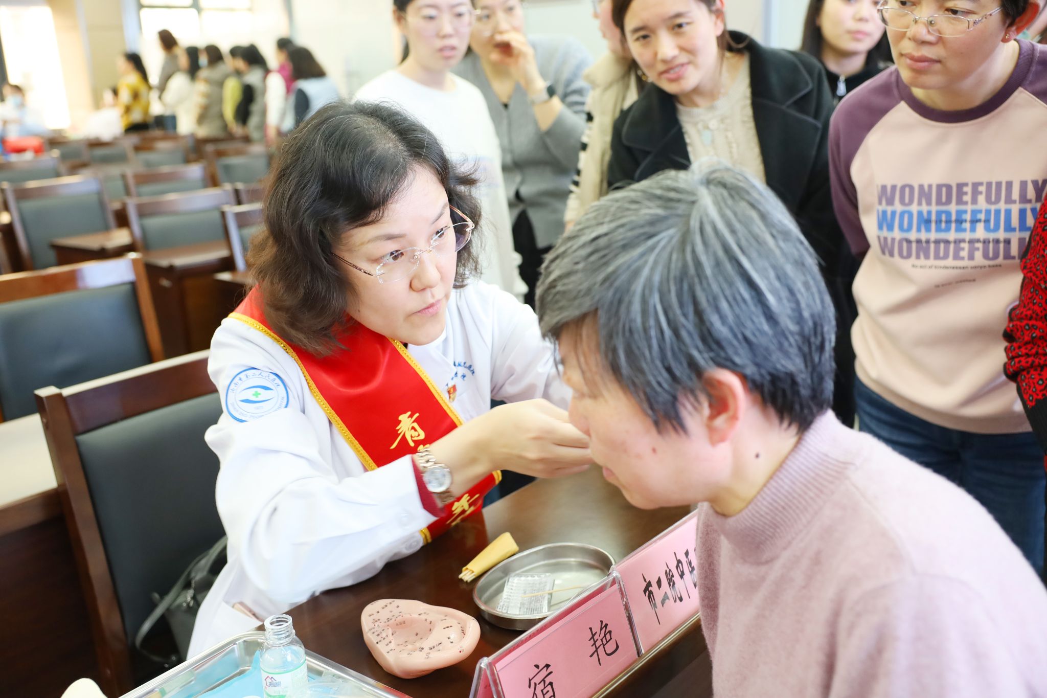 为职工进行耳穴压豆