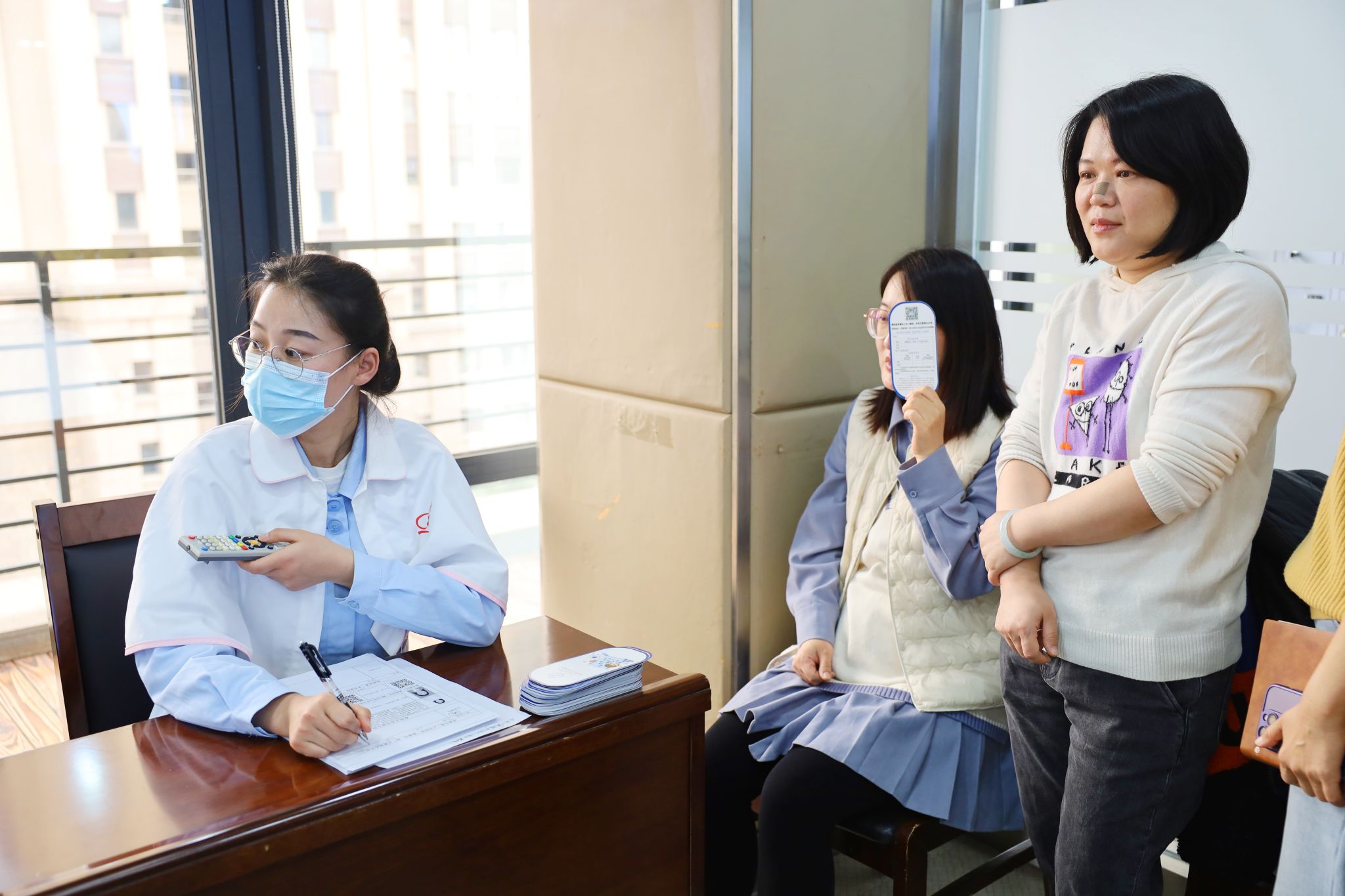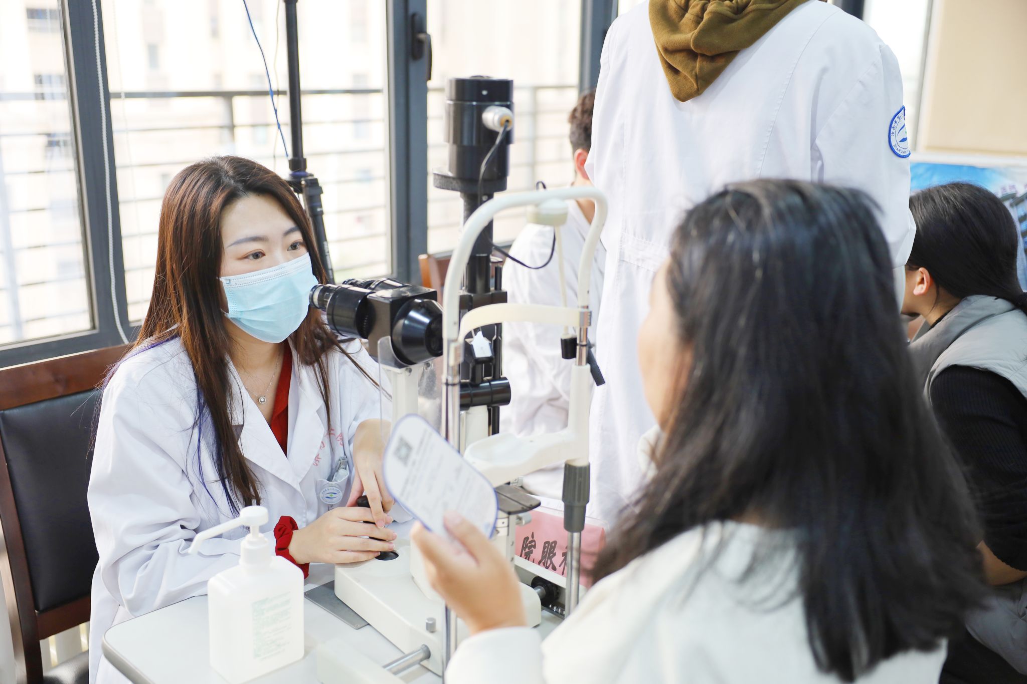 为职工检查眼睛并答疑解惑