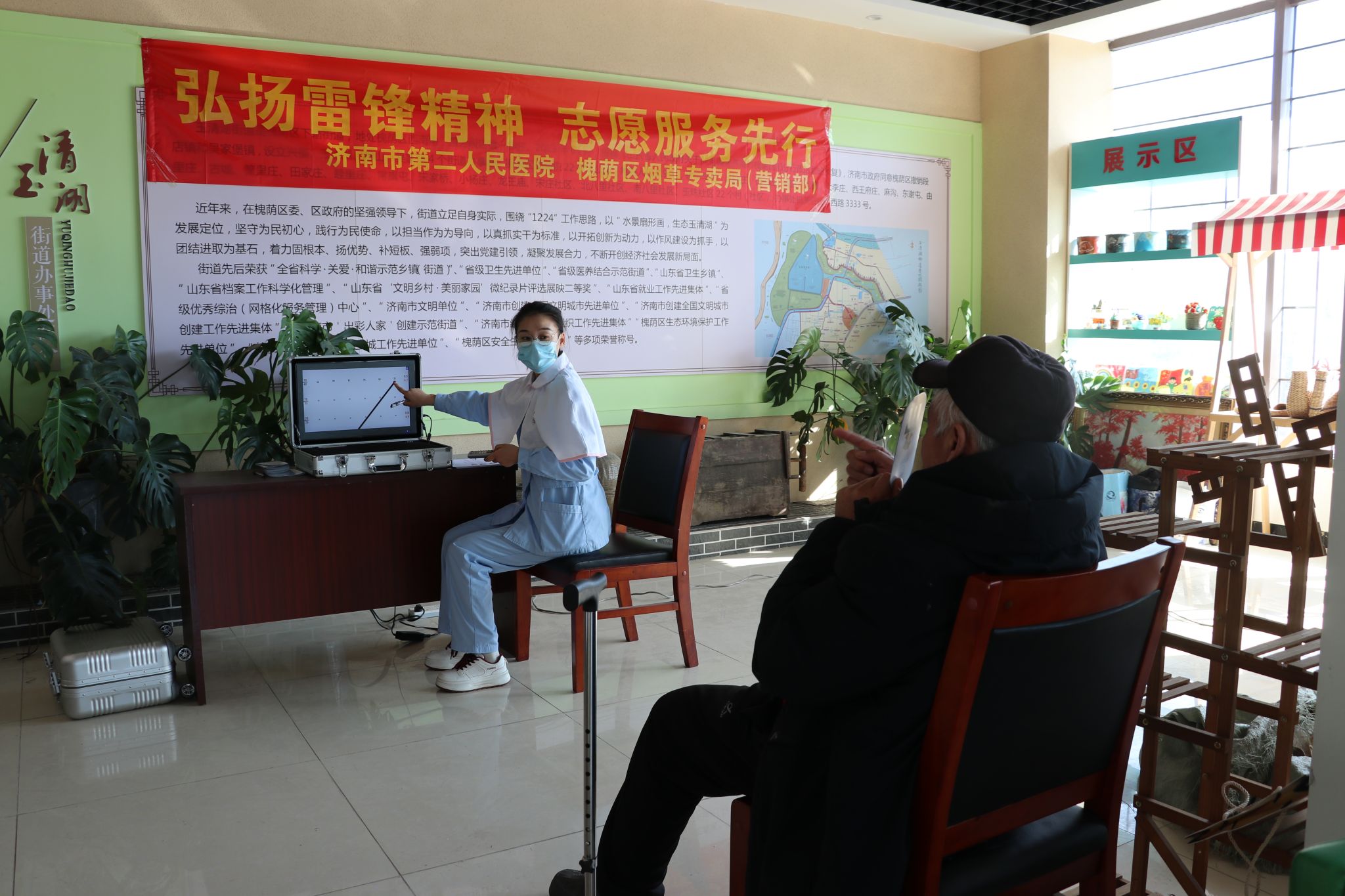 )组织“党员志愿服务队”走进槐荫区玉清湖街道如康家园日间照料中心,开展“学雷锋,送健康”义诊活动,为当地老年人送去温暖和关怀。