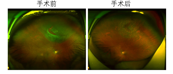 )眼二科(眼底病专业)寻求帮助,经过主任医师舒相汶的详细检查,发现上方视网膜脱离,已经累及到视网膜上重要的部位黄斑区,而且裂孔较大,情况不容乐观。张老师的孔源性视网膜脱离是临床常见的致盲眼病,需要及时的诊断及手术治疗。