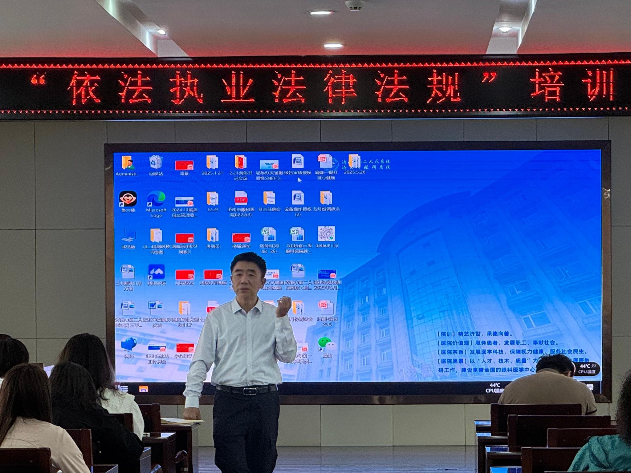 培训结束后,市眼科医院(市二院)副院长王旭结合当前医院标准化建设化要求,现场部署专项整改工作,要求各科室对照培训内容开展医疗安全自查,重点核查制度落实台账、知情同意书规范性、高风险技术授权管理等环节。