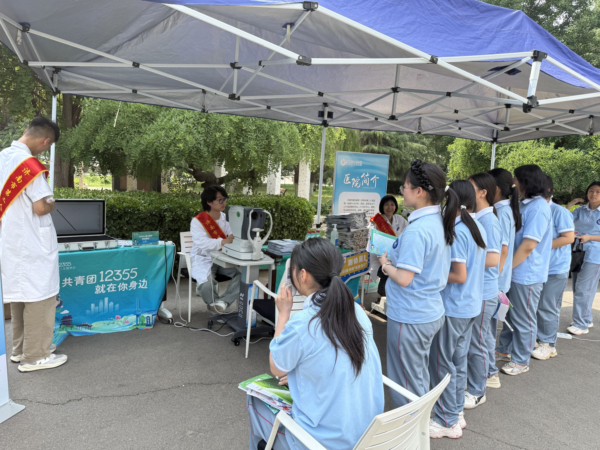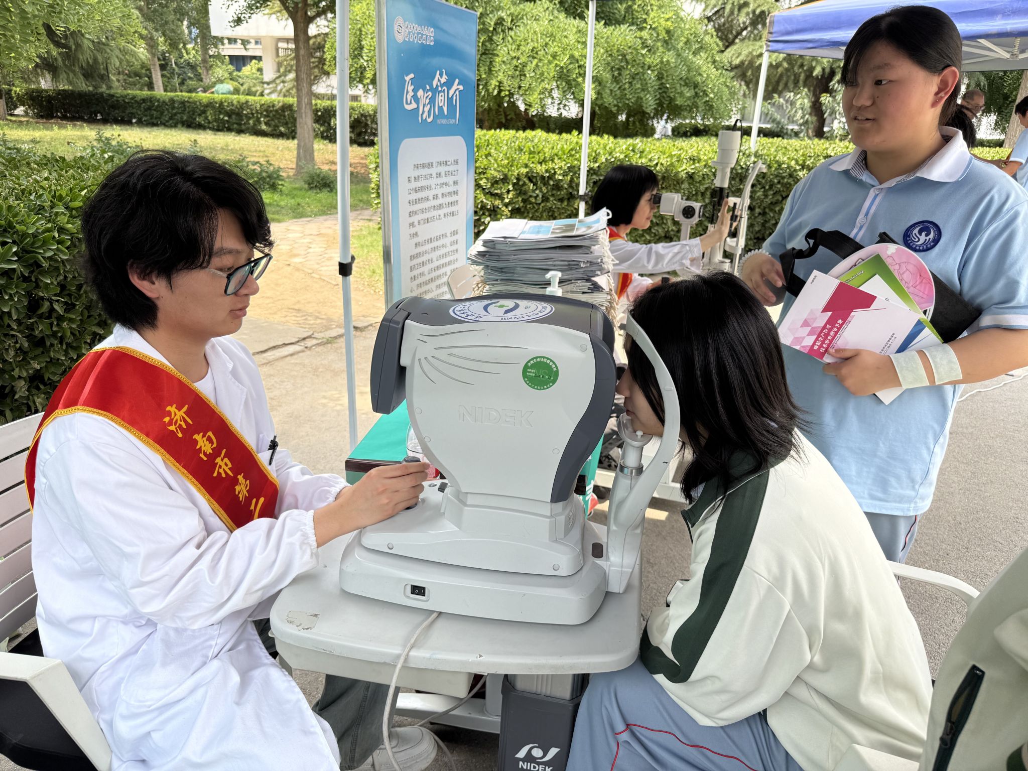 市眼科医院(市二院)的志愿者们以专业的态度和精湛的技术,为学生们逐一进行了视力检查,验光环节让学生们对自己的屈光度有了更清晰的了解,屈光手术中心主任通过裂隙灯检查进一步帮助学生排查眼部潜在问题。检查过程中,医护人员耐心细致地解答了学生们的疑问,并给予个性化的视力保护建议。此外,志愿者们还利用此次机会,向学生们普及了眼健康知识,强调了科学用眼、合理膳食、定期检查等对于保护视力的重要性。现场发放的视力保护宣传材料也深受学生们的欢迎,他们纷纷表示要将学到的知识应用到日常生活中,切实保护好自己的眼睛。