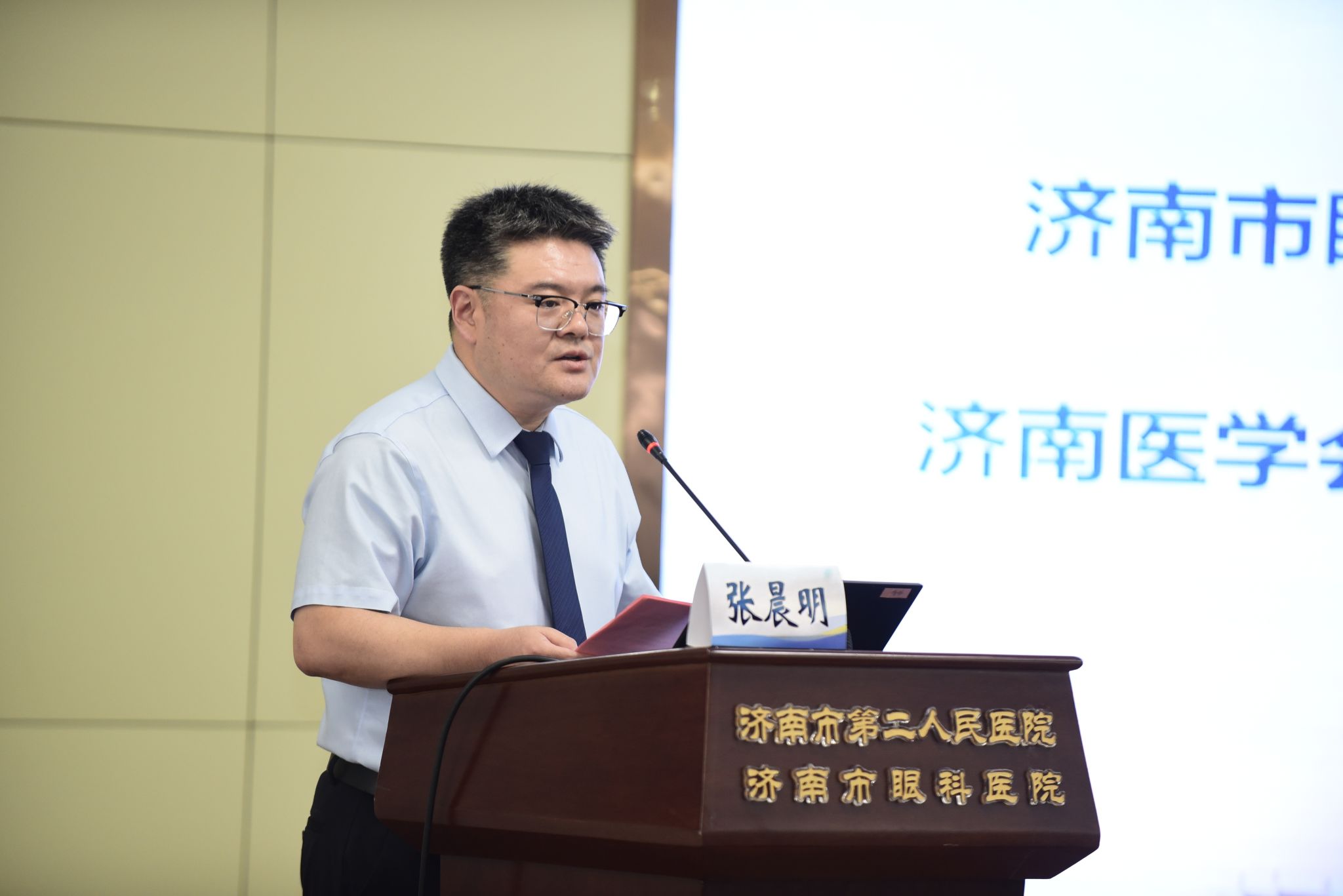 济南医学会第十一届眼科学专业委员会候任主委、市眼科医院(市二院)党委委员张晨明回顾了过去一年中专委会在各个领域取得的成就,包括学术研究、教育培训、临床实践以及国际交流等方面,他指出,未来一年中,眼科专委会将继续深化学术研究,推动临床技术的创新与应用,并加强与其他学科的交叉合作。