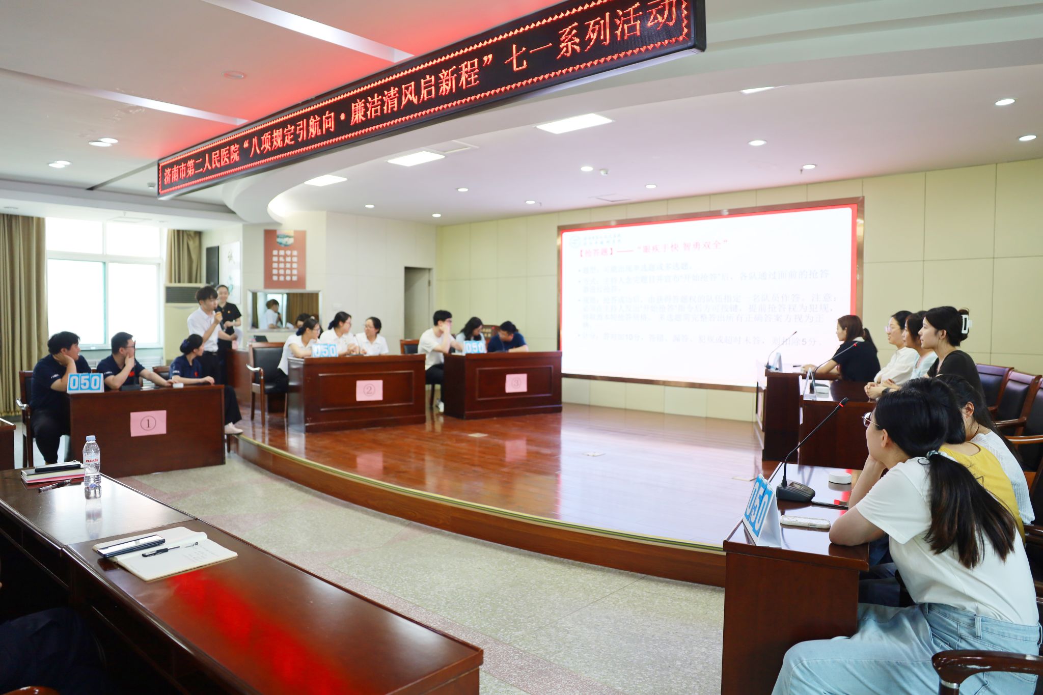 党课结束后,举行了“党建铸魂•标准筑基”知识竞赛。此次竞赛内容涵盖了党建知识、医院标准化建设应知应会与医院文化,旨在通过竞赛形式强化党员、团员对党的历史、医院发展及医疗规范的认知。参赛选手们积极踊跃,答题过程紧张激烈,充分展现了医院职工扎实的知识储备和良好的精神风貌。