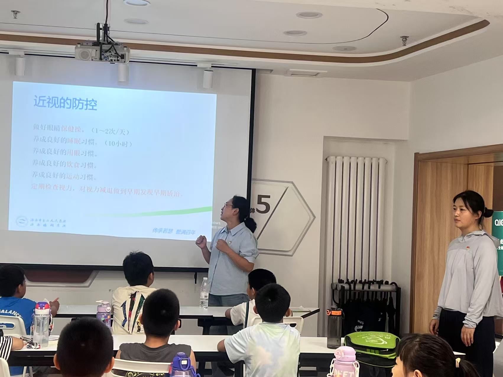 )门诊党支部与槐荫区五里沟街道办事处携手开展了“双报到”活动。此次活动聚焦社区儿童眼健康,通过“爱眼小课堂”和眼保健操教学,为社区托管班的小朋友们送上了一份珍贵的暑期健康礼物。