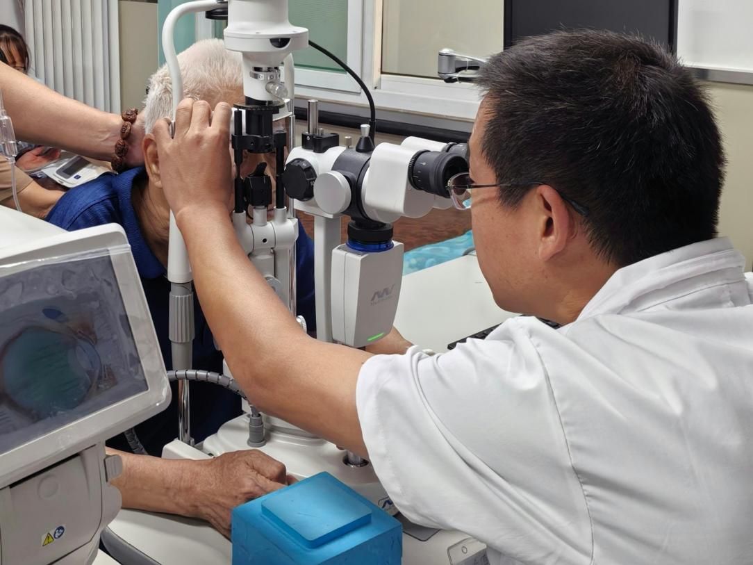 ),他那双浑浊的眼睛已经被朦胧笼罩了太久,侯先生患有右眼白内障与青光眼,视力持续恶化,生活极为不便。更棘手的是,侯老先生患有多年房颤病史伴随心率缓慢,心脏功能如同“脆弱的引擎”,同时还被抑郁症困扰。此前,他曾在外院接受手术治疗,但因术中风险评估过高,手术被迫暂停。不甘心失去光明的侯老先生在家人的陪同下,慕名来到眼七科(白内障二科)主任、主任医师李彬的诊室。“听说这里的白内障专家李彬能治眼病疑难杂症,我们就抱着最后一丝希望来了。”侯先生的家人回忆道。