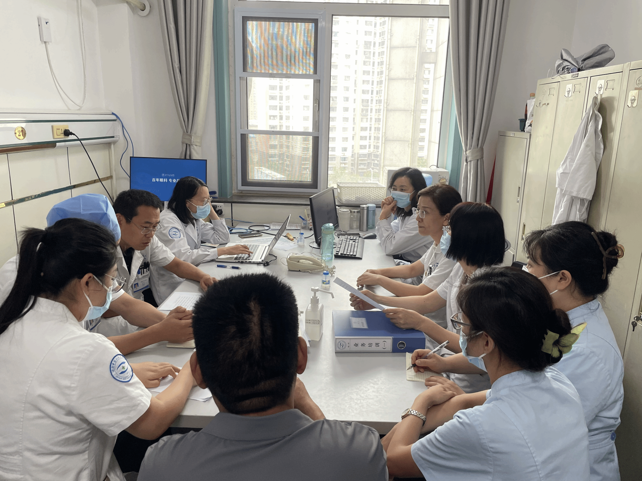 为了确保手术安全和效果,眼三科副主任、 主任医师张苗苗启动多学科(MDT)协作机制,邀请白内障科,角膜病科,麻醉科等相关领域的专家共同研讨。会诊中,专家们围绕患者的病史、检查数据展开细致分析,针对虹膜粘连分离、角膜水肿和角膜内皮失代偿控制、晶状体摘除方式等关键环节反复推演,最终制定了一套个性化方案,为手术顺利实施筑牢的“安全防线”。