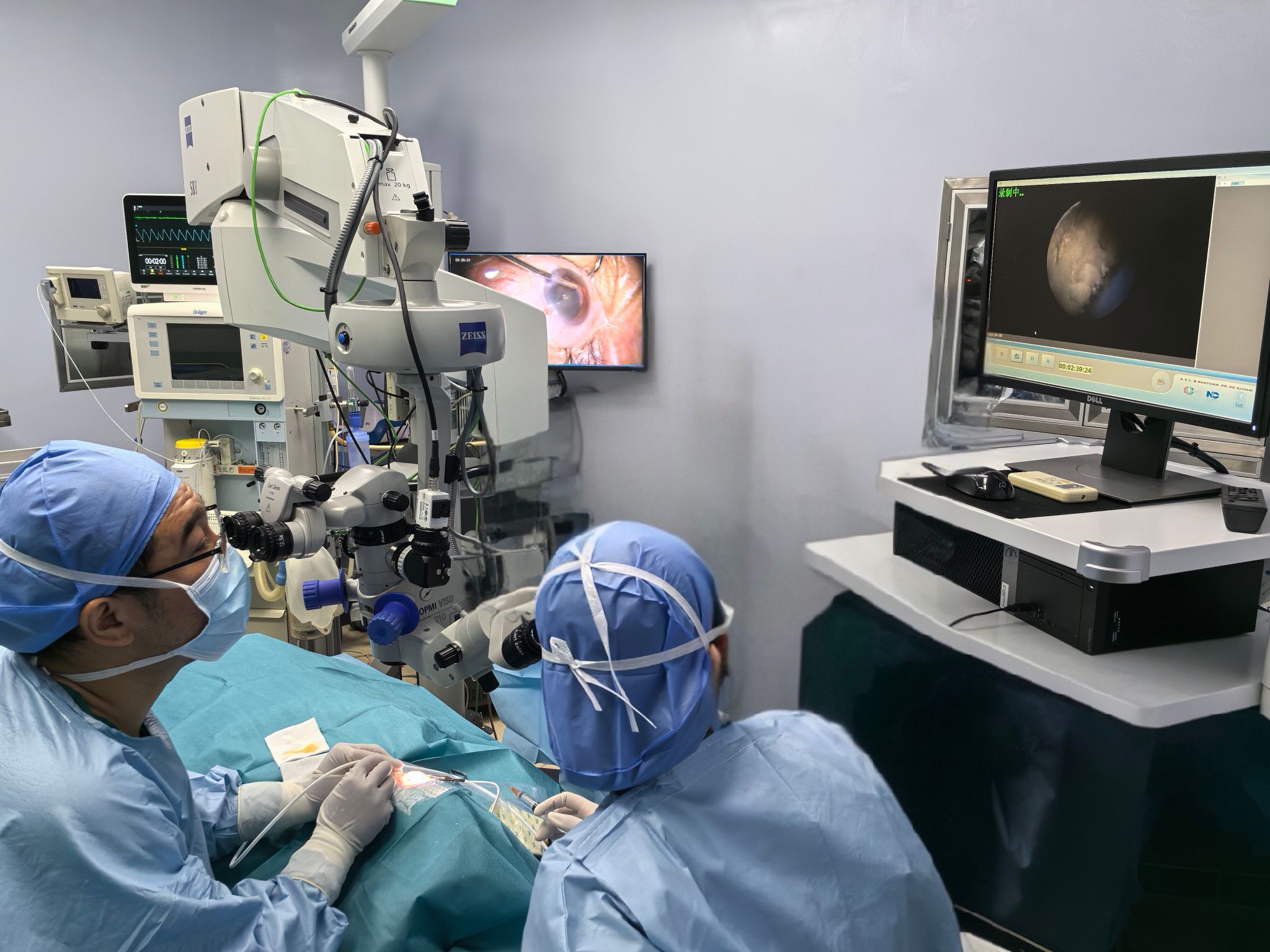 面对这一棘手病例,医院迅速组织了MDT多学科会诊,专家组决定使用眼科内窥镜。该设备是一种前端集成着直径不到1毫米高清摄像头的尖端器械,可以伸入眼内,将隐藏在“视线盲区”的结构实时呈现在屏幕上。陶远主任介绍说:“它就像为眼科手术安装了一套精准的‘导航系统’,让医生能清晰看到以前无法直接观察的角落,从而实现指哪打哪的精准操作。”