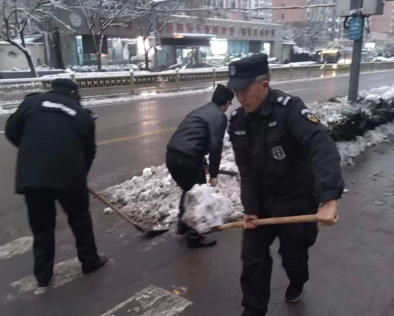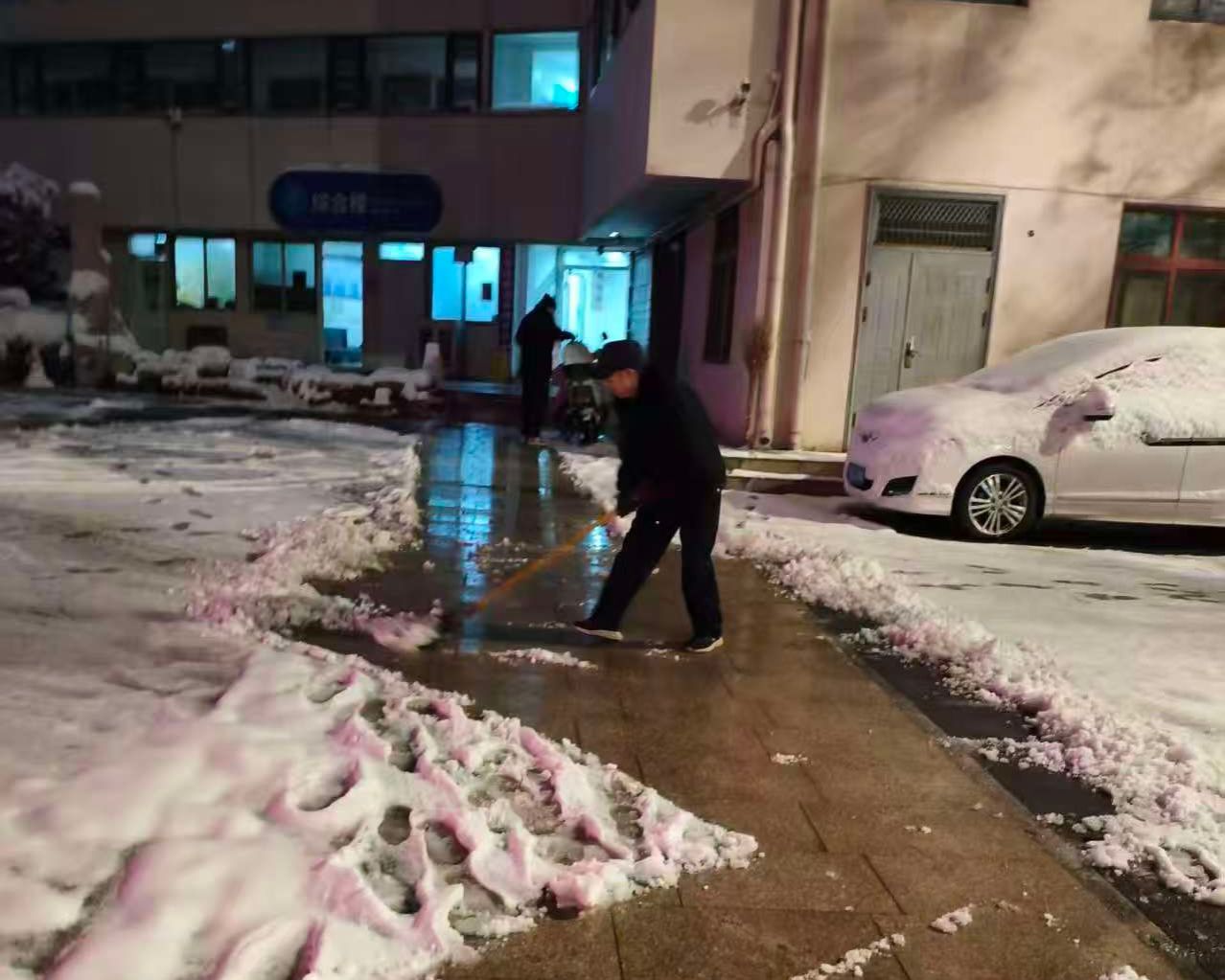 )迅速启动应急预案。12日傍晚至今晨,医院各部门工作人员连夜开展扫雪融雪行动。