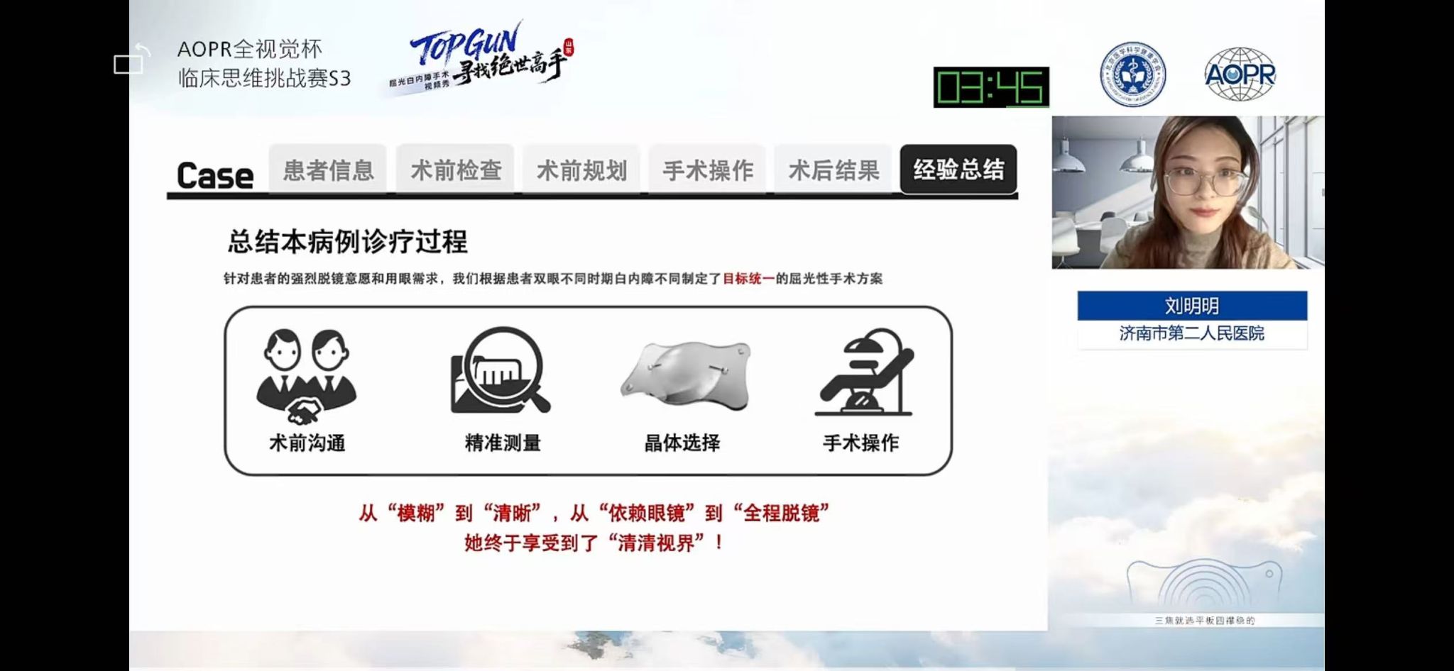 )眼四科(白内障一科)的刘明明医生在王晶主任的指导下,凭借其精湛的临床技艺与深刻的诊疗思维,从众多选手中脱颖而出,荣获最佳病例奖。