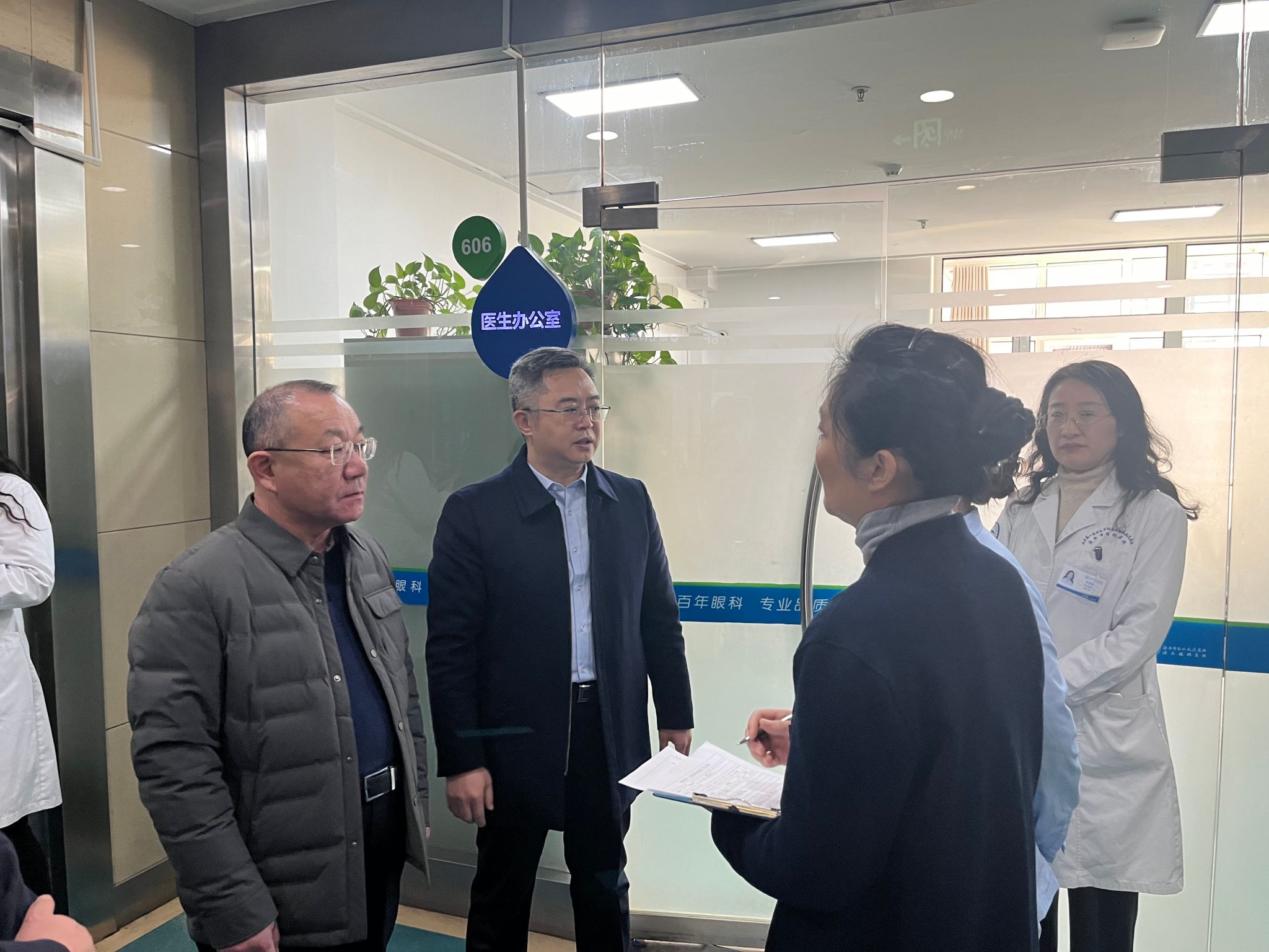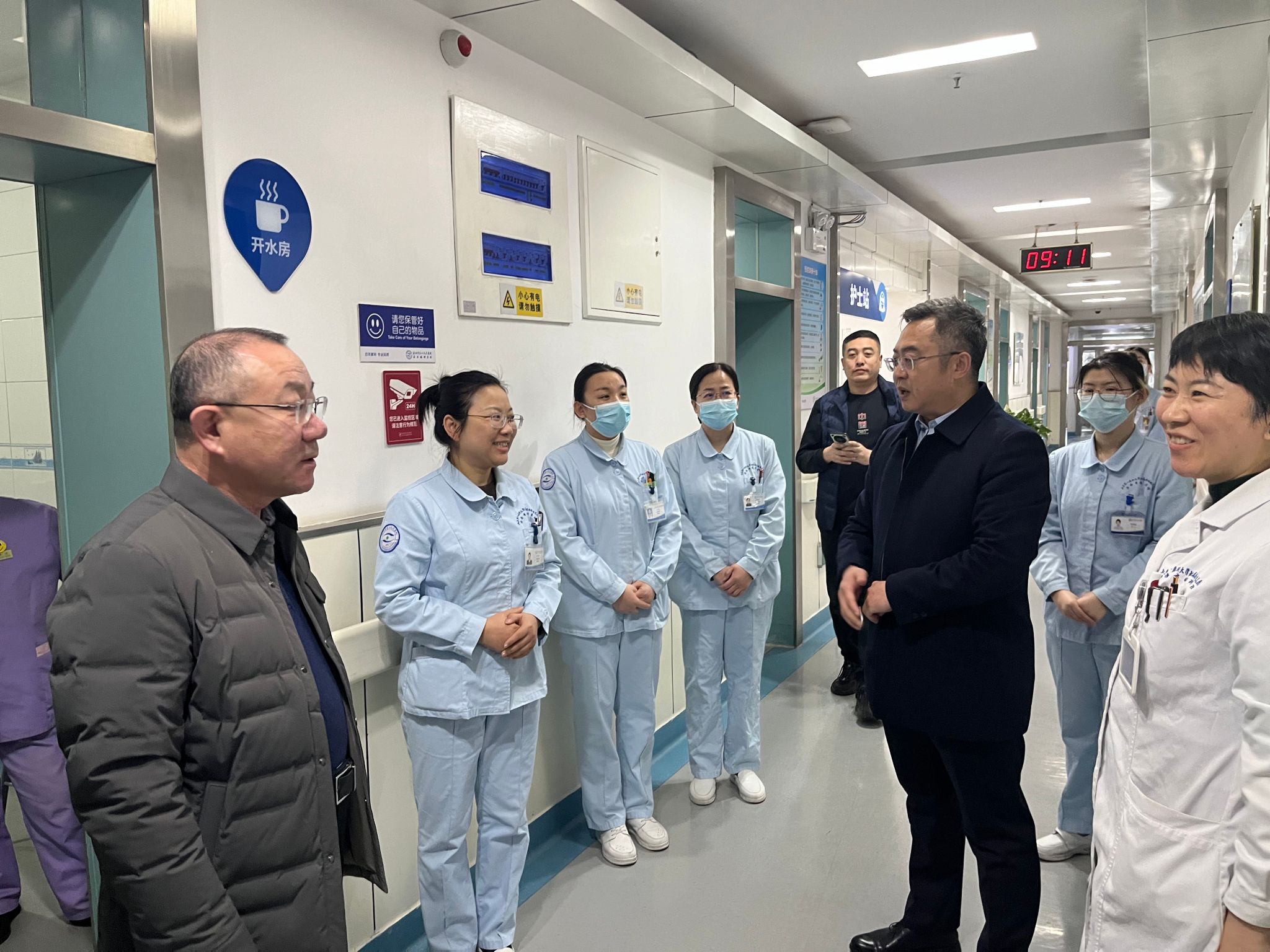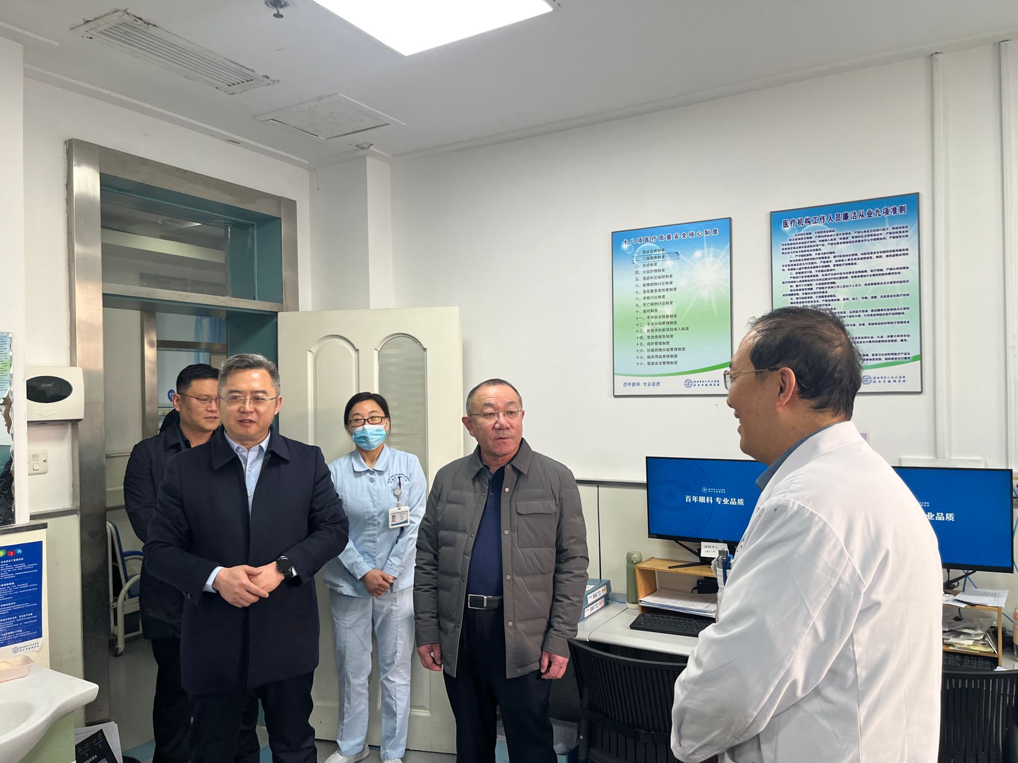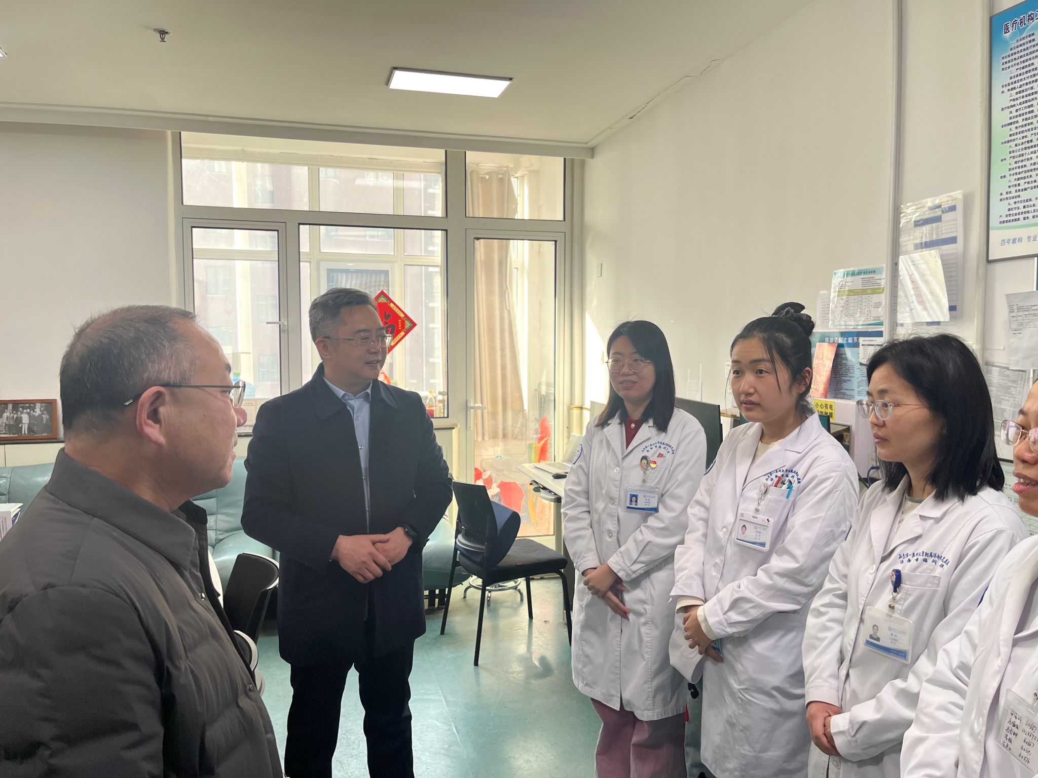 )党委书记东光国、院长刘军、副院长王旭带领相关职能科室负责人开展节前综合行政查房,并向一线科室医务人员送去新春祝福。