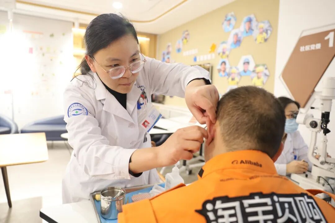 眼十科(中医眼科)主治医师宋杰通过把脉、耳穴压豆等传统疗法,为大家提供中医保健指导,有效减轻了部分居民眼部的不适症状。干眼门诊主治医师张雪雁则提供眼科疾病咨询服务,并对干眼症、视疲劳等常见眼病进行现场筛查。