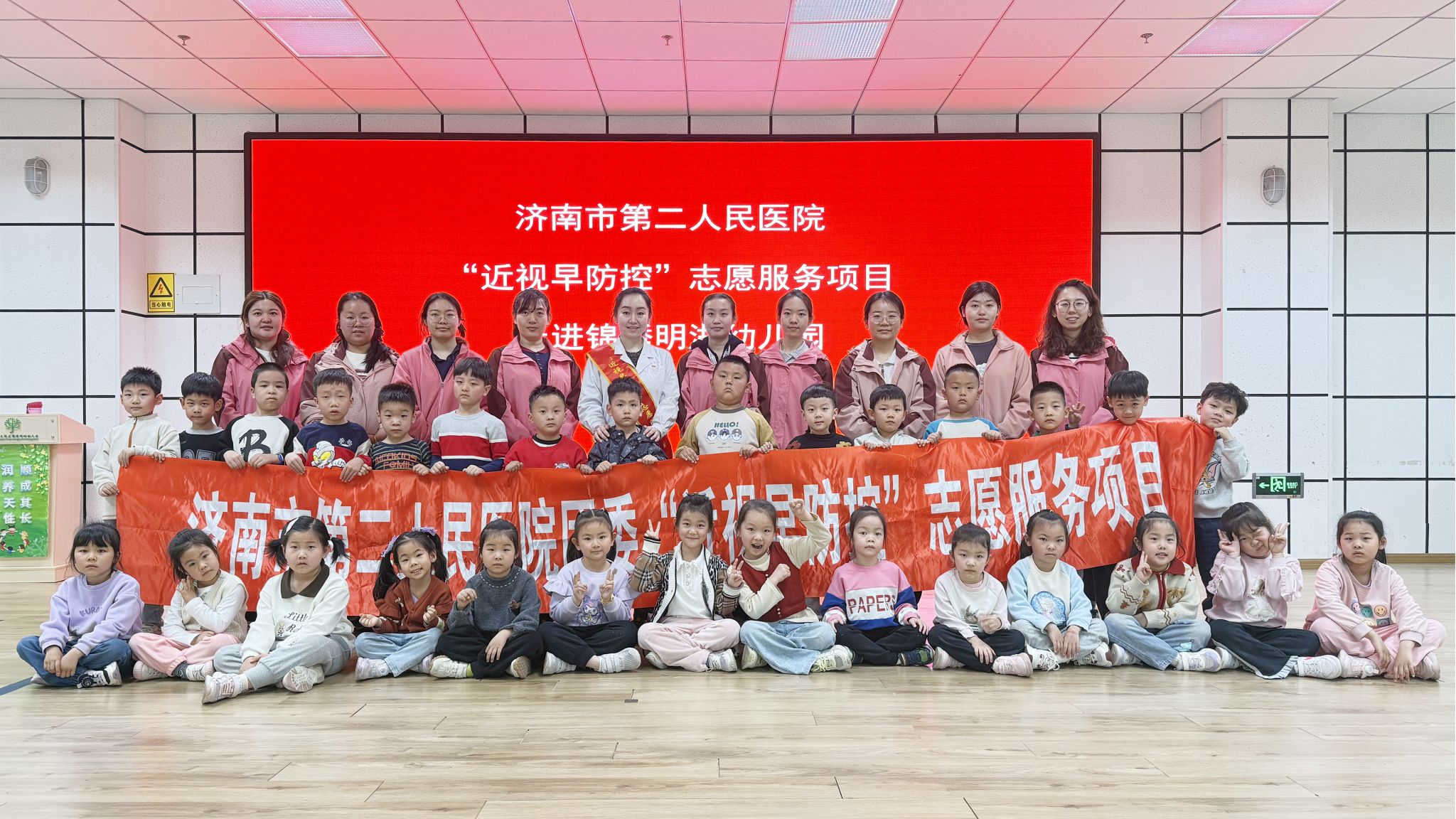 )“近视早防控”志愿服务活动走进济南市锦绣明湖幼儿园,为孩子们带来一场生动有趣的爱眼护眼公益课,用志愿微光守护孩子们清澈明亮的“视”界。