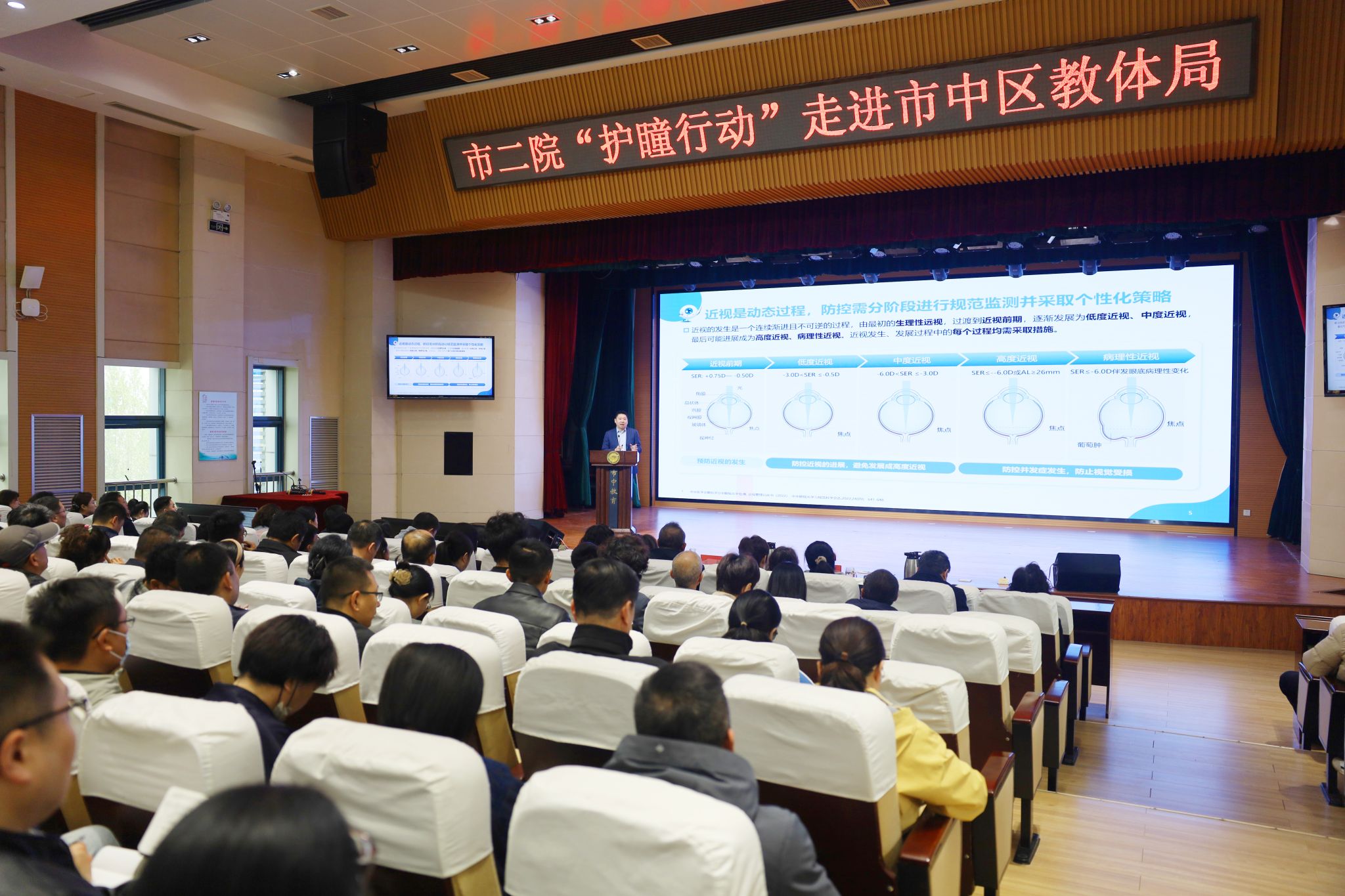 )“护瞳行动”志愿服务队走进济南市市中区教育和体育局,为全区各中小学校长、分管副校长、体育教研组长、区教体局相关科室人员带来了一场生动实用的近视防控专题培训。