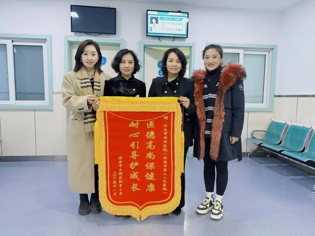 )“小手拉大手 大手牵小手”青年志愿服务项目接连收到两份特殊礼物:一面来自结对帮扶老人高阿姨的致谢锦旗与感谢信,一面来自天桥区枫景小学的锦旗。两面锦旗,一头连着银发安康,一头牵着少年成长,生动诠释了项目深耕“一老一小”关爱服务、践行公立医院社会责任的温暖初心。
