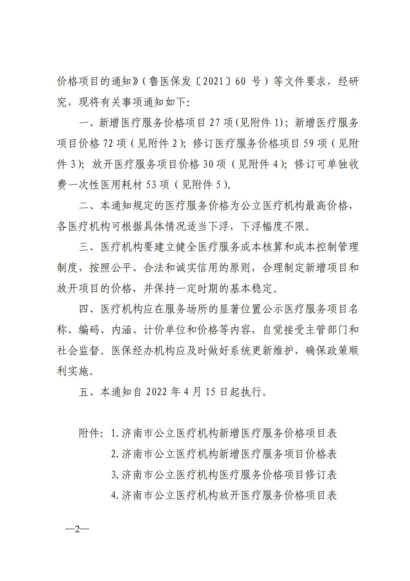 济南市医疗保障局关于新增和修订部分医疗服务价格项目的通知