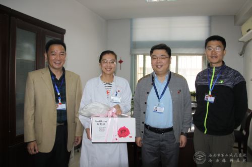 10月9日上午,美女视频 党委书记牟鑫、工会主席曹传洲,看望了济南市五一劳动奖章获得者、医院感染管理科的高晖同志,把生日的美好祝愿和蛋糕送到了她的手中。 高晖同志自2013年护理专业研究生... -