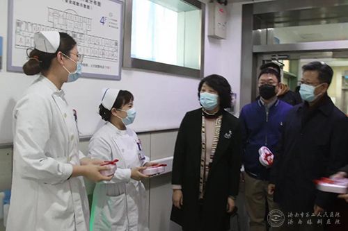 2月12日(正月初一)上午,美女视频 院领导走访慰问了春节期间坚守岗位的干部职工。市二院党委书记吕丽萍、副院长张亚军、副院长王俊峰、副院长曹传洲、纪委书记李洁月参加慰问活动。 “辛苦了!...