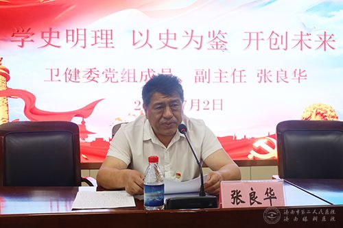 7月2日下午,市卫健委党组成员、副主任张良华同志到美女视频 讲授专题党课,院领导班子成员、科主任、护士长、全体党员参加此次党课培训,院党委书记吕丽萍主持会议。 张良华以《学史明理 以史... -
