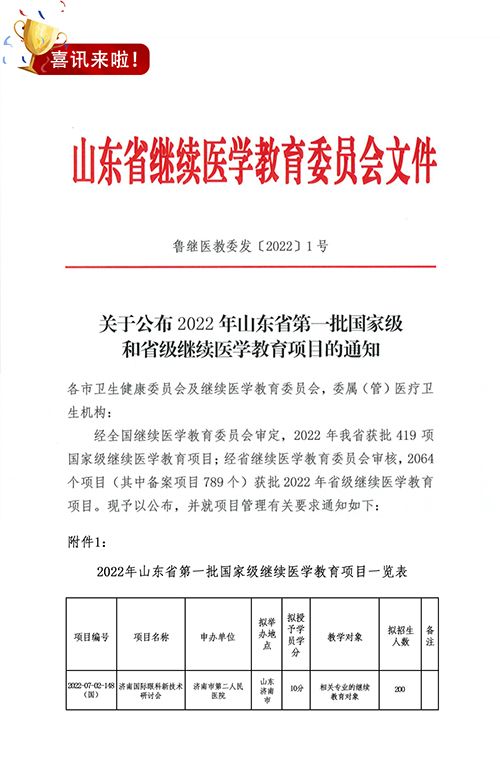 近日,全国继续医学教育委员会公布了2022年第一批国家级继续医学教育项目。美女视频 申报的“济南国际眼科新技术研讨会”【2022-07-02-148 (国)】获批立项,填补了市二院国家级继教项目的空白。  ... -