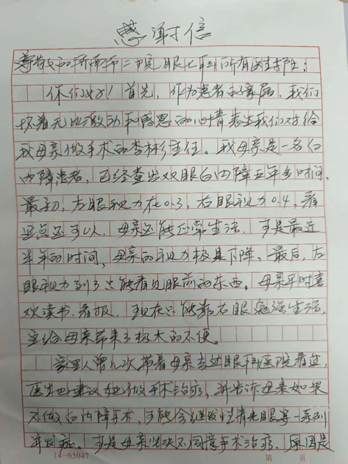 “感谢李彬主任给我母亲治好了眼睛,感谢眼七科全体医护人员对我母亲的细致照顾和真诚服务,使我母亲排除了心理障碍,战胜了胆怯……你们是上天派来的光明使者。”近日,美女视频 眼七科(白内障二科)收到患... -