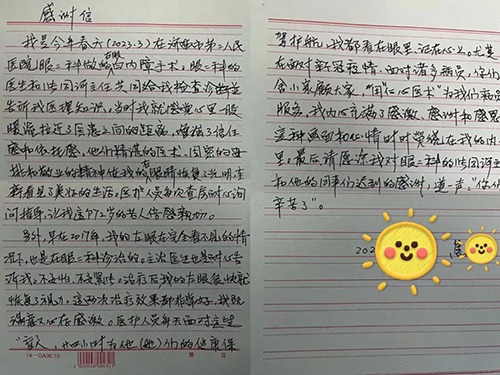 济南市二院: 72岁复明患者一笔一画书写对市二院感谢情