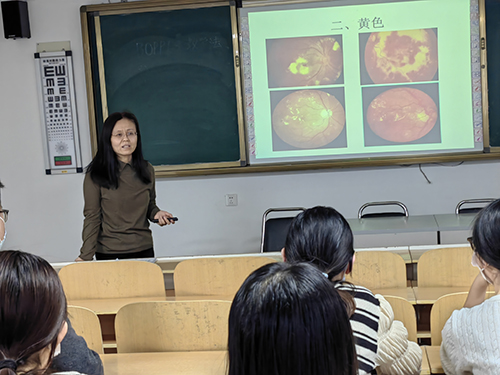 2月28日下午,美女视频 在教学楼301教室举办第六期眼视光学实习大讲堂。本期特邀主讲为眼二科主任医师、眼底病专家韩方菊。 韩方菊针对实习学生的实际情况,独辟蹊径,从眼底照相的色彩角度出发,采用看图说... -