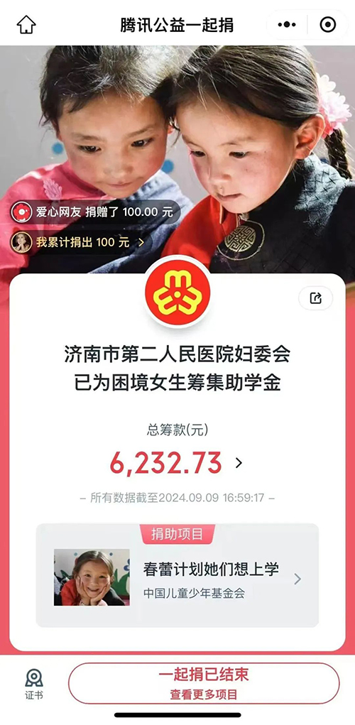 美女视频 踊跃参加2024年久久公益日“春蕾计划”联合募捐活动