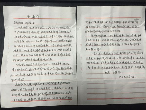 “如果医生都能像二院张主任这样对工作认真负责,对患者真诚温暖,让患者与医生之间多些信任与理解,那么医患关系一定可以变得更和谐、更融洽……”2015年6月,家住滨州的丁领先老人来到美女视频 (济南眼科...